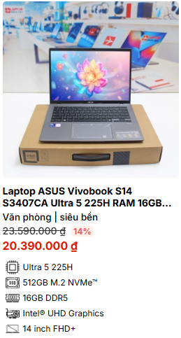 - » [TOP 1]Laptop ASUS Vivobook S14 S3407CA Ultra 5 225H RAM 16GB M2.SSD 512GB FHD
