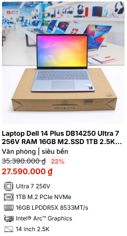 - » [TOP 2]Laptop Dell 14 Plus DB14250 Ultra 7 256V RAM 16GB M2.SSD 1TB 2.5K (2025)