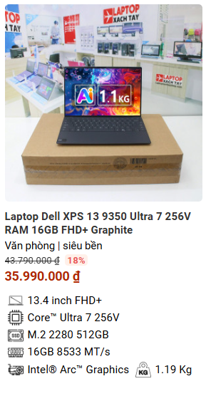 » [TOP 3]Laptop Dell XPS 13 9350 Ultra 7 256V RAM 16GB FHD+ Graphite