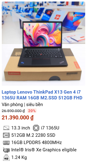 » [TOP 1]Laptop Lenovo ThinkPad X13 Gen 4 i7 1365U RAM 16GB M2.SSD 512GB FHD