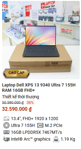 » [TOP 1]Laptop Dell XPS 13 9340 Ultra 7 155H RAM 16GB SSD 1TB FHD+
