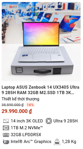 - » [TOP 5]Laptop ASUS Zenbook 14 UX3405 Ultra 9 285H RAM 32GB M2.SSD 1TB 3K OLED