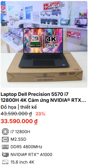 - » [TOP 2]Laptop Dell Precision 5570 i7 12800H 4K Cảm ứng NVIDIA® RTX™ A1000 4GB | RAM 32GB M2.SSD 512GB