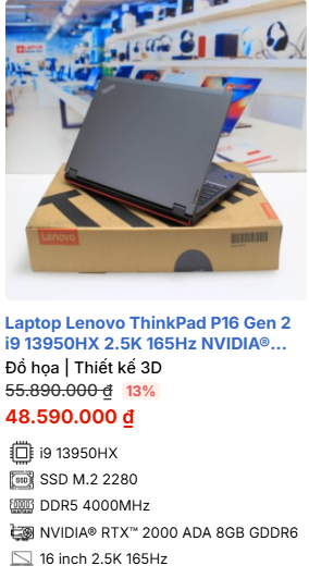 👉 Nếu mua cũ, ưu tiên ThinkPad P series, Dell Precision, HP ZBook.