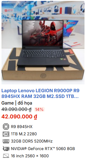 - » [TOP 5]Laptop Lenovo LEGION R9000P R9 8945HX RAM 32GB M2.SSD 1TB 2.5K 240Hz NVIDIA® GeForce RTX™ 5060 8GB