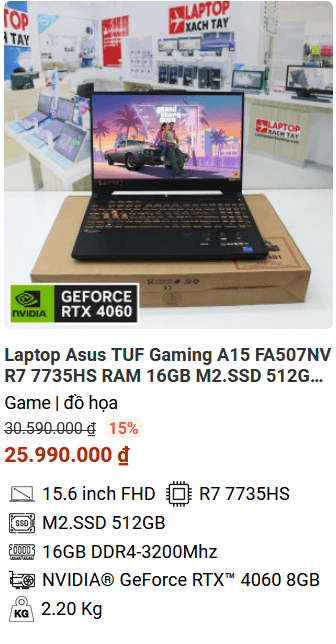 - » [TOP 1] Asus TUF Gaming A15 FA507NV R7 7735HS RAM 16GB M2.SSD 512GB FHD NVIDIA GeForce RTX 4060 8GB
