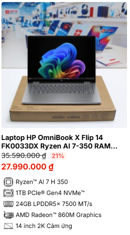 - » [TOP 3]Laptop HP OmniBook X Flip 14 FK0033DX Ryzen AI 7-350 RAM 24GB M2.SSD 1TB 2K Cảm ứng lật xoay 360 độ