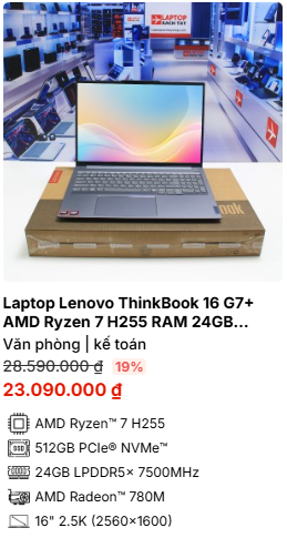 - » [TOP 4]Laptop Lenovo ThinkBook 16 G7+ AMD Ryzen 7 H255 RAM 24GB M2.SSD 512GB 2.5K 120Hz
