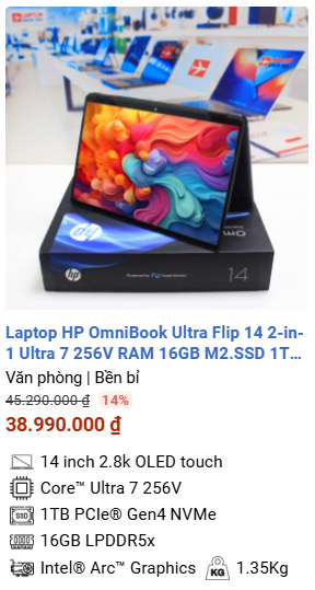 » [TOP 5]Laptop HP OmniBook Ultra Flip 14 2-in-1 Ultra 7 256V RAM 16GB M2.SSD 1TB 2.8K OLED Cảm ứng – New Spectre