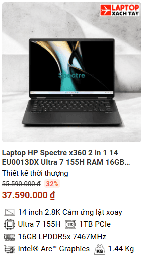 » [TOP 2]Laptop HP Spectre x360 2 in 1 14 EU0013DX Ultra 7 155H RAM 16GB M2.SSD 1TB 2.8K Cảm ứng lật xoay 360 độ