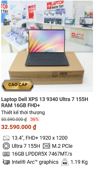 » [TOP 3]Laptop Dell XPS 13 9340 Ultra 7 155H RAM 16GB FHD+