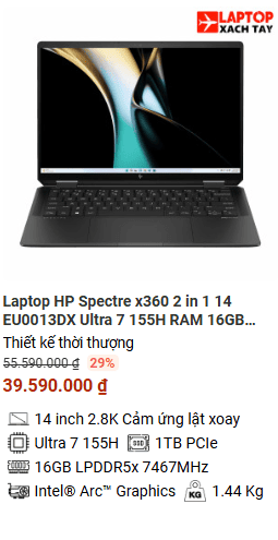 » [TOP 3]Laptop HP Spectre x360 2 in 1 14 EU0013DX Ultra 7 155H RAM 16GB M2.SSD 1TB 2.8K Cảm ứng lật xoay 360 độ