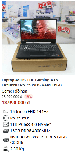 - » [TOP 3]Laptop ASUS TUF Gaming A15 FA506NC R5 7535HS RAM 16GB M2.SSD 1TB FHD NVIDIA GeForce RTX 3050 4GB GDDR6