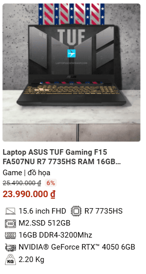 - » [TOP 4]Laptop ASUS TUF Gaming F15 FA507NU R7 7735HS RAM 16GB M2.SSD 512GB FHD NVIDIA GeForce RTX 4050 6GB